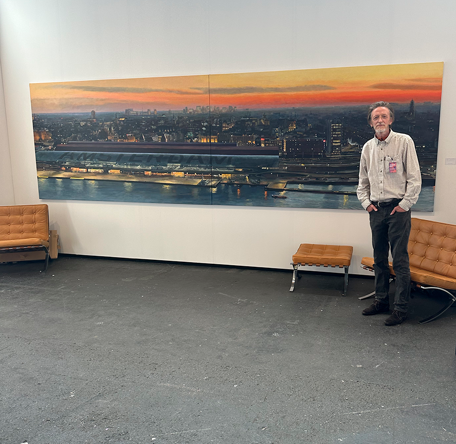 Tijdens de kunstRAI vertelt Niels De Boer over de kunst die zij hebben meegenomen. Schilder Arie Schippers neemt ons mee in zijn Panorama van Amsterdam tijdens rush hour. Wat hij in opdracht maakte voor Kunsthandel De Boer.